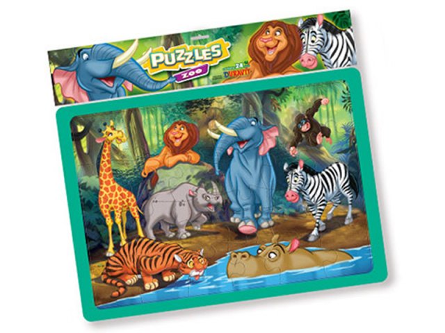 Divertido puzzle horizontal de tren mágico con animales de circo.