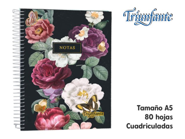 Cuad. c/esp Triunfante Floral T/D A5 80hs #