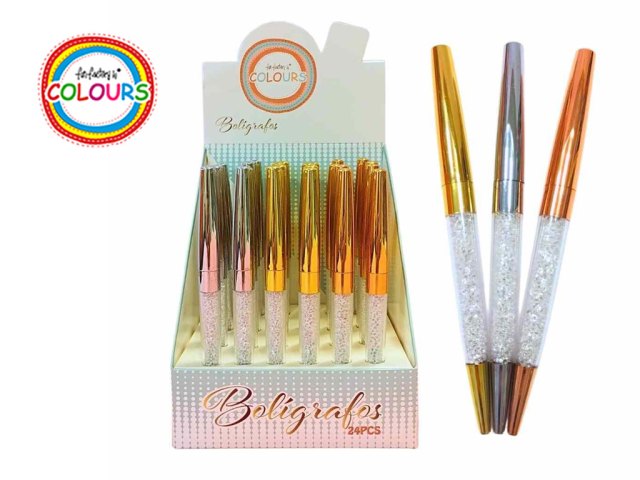 Boligrafo metal c/mostacillas color metal tinta azul 27027