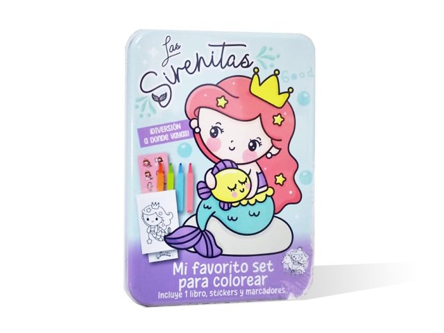Divertido set para colorear y actividades presentado en caja de lata.