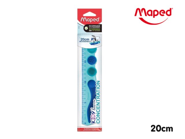 La regla flexible Maped está fabricada en PET, un material ultra resistente que soporta impactos, dobleces y torsiones sin romperse.