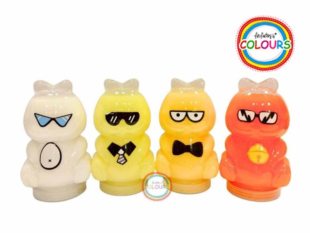 Pote de slime con brillos en forma de estrella.Tapa con diseño de ositos.Disponible en 4 colores (se venden por separado)